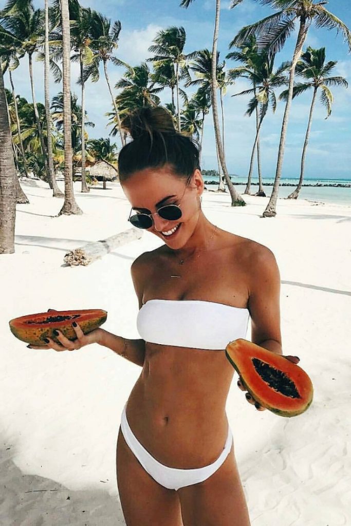 Y si más bien eres una chica pettite, un modelo monocromático, de cintura baja y top sin pliegues será una grandiosa opción para que disfrutes de tus vacaciones y brilles con el sol.