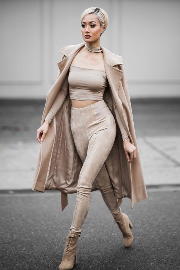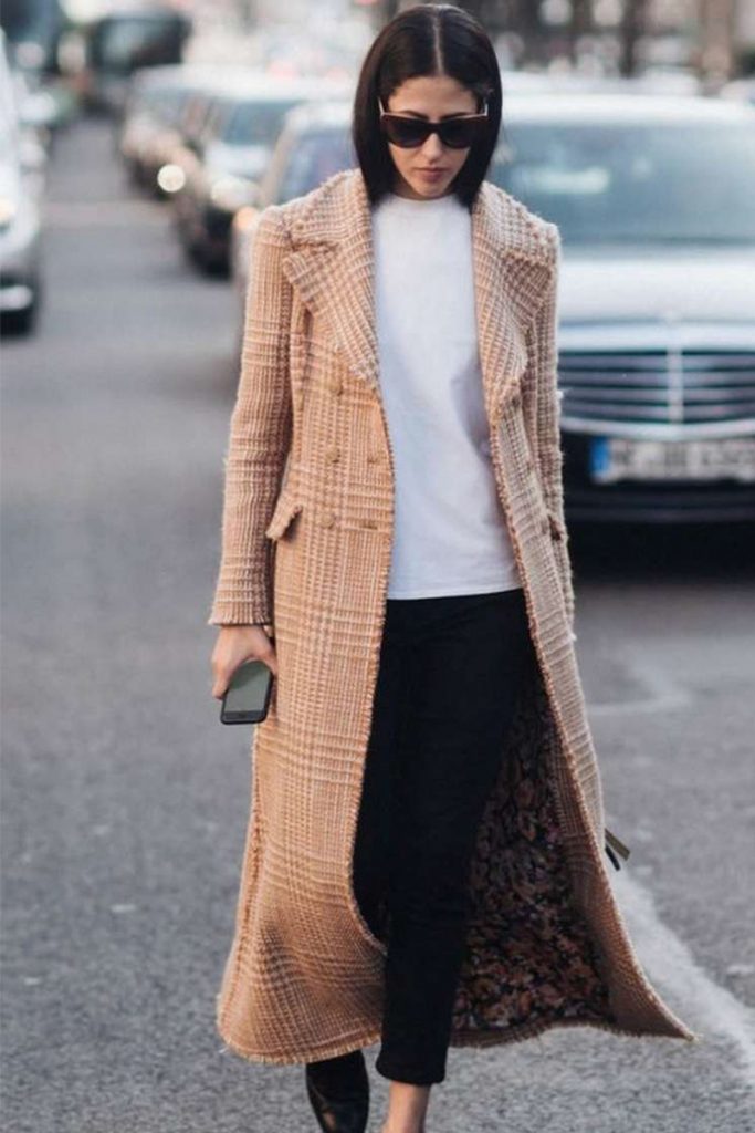 Puedes agregar un poco de contraste añadiendo detalles a tu abrigo nude, busca uno con líneas o cuadros, agrega accesorios llamativos y entra en tendencia.