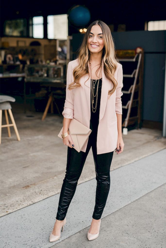 El blazer es la versión más classy de las chamarras, le da a tu look una apariencia más glamorosa y chic. Puedes usarla en un nude con tendencia al rosa para imprimirle feminidad.